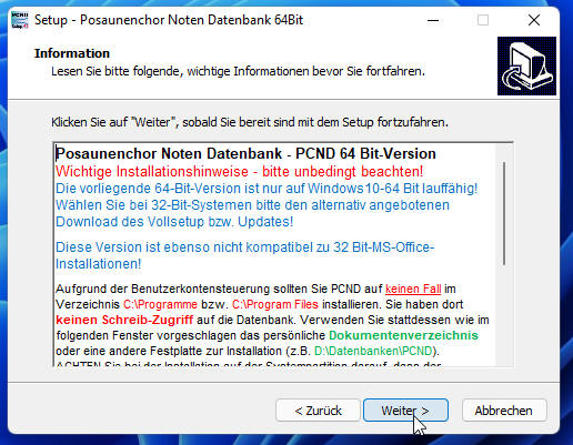 Die Installation von PCND ist identisch mit dem PCND-Setup