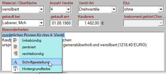 Eingabeformular zur Erfassung der einzelnen Instrumenteninfos: